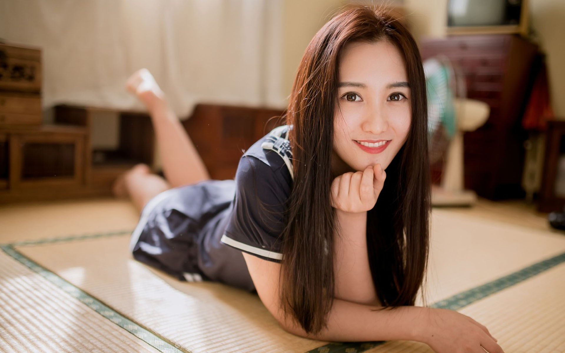 接下来,一个臃肿的中年男子,只穿条短内裤,轻轻的走过去女友的身边,手扶着她的肩头,说:“来!小凡!脸看着镜头,就是这个角度!”女友害羞的娇嗔说:“可以不可以不要拍啦!”教授说:“小凡!我想要看清楚你呀,将来留做个纪念。”女友还是有点不甘愿的说:“可是之后回去后还要见面的,教授以后课堂还要上你的课呀,这样多尴尬呀。”教授说:“不会啦,回去后,我不会泄漏出去的,只有你我知道,好了,我们快点来吧!!”说完,教授就坐在一张沙发椅上,翘起二郎腿,很享受的看着女友。