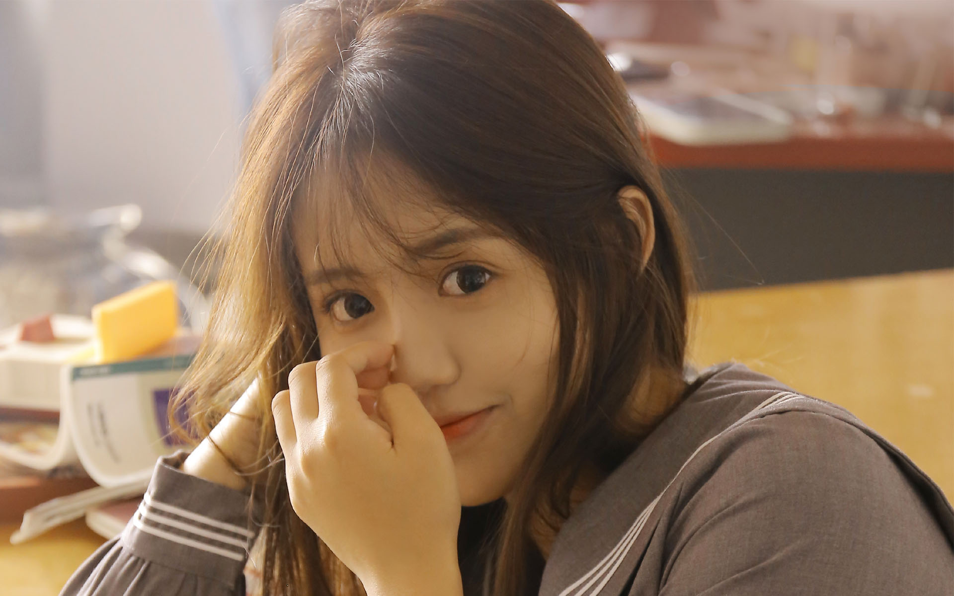 她如苹果般的脸颊,听着她小嘴吐出来的喘息声,问她舒服吗?她便用头轻轻撞我的胸。从此以后我就经常给她手