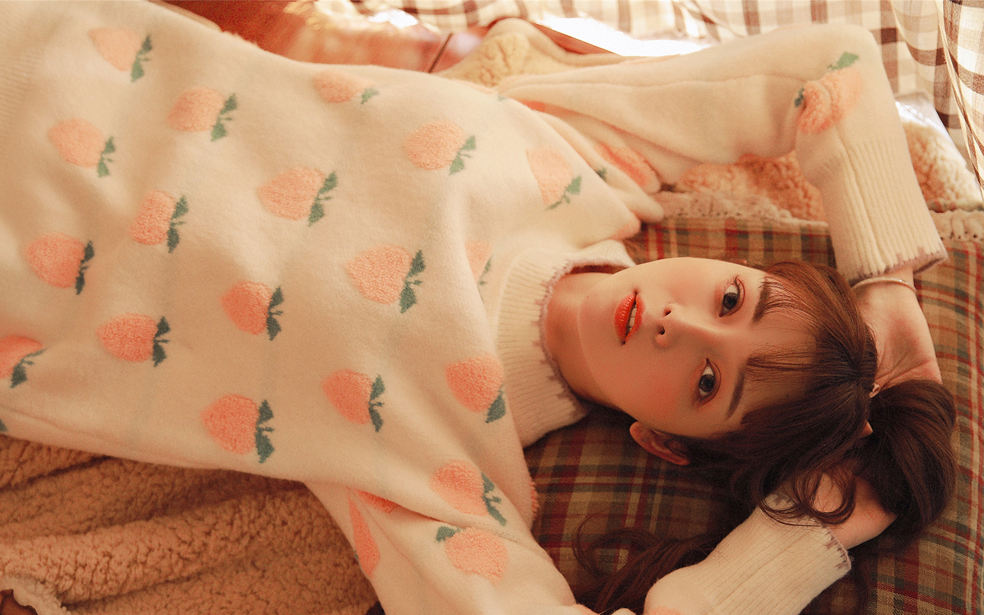 随风飘荡的窗帘没有遮挡住多少室外的烈火焦阳,鹅黄色的光斑洒在少女白皙的肌肤上明艳动人,静静安躺在粉红色单人床上的段莹莹,只有薄毯的一角轻挂在腰间,成熟的少女裸体几乎一览无遗。