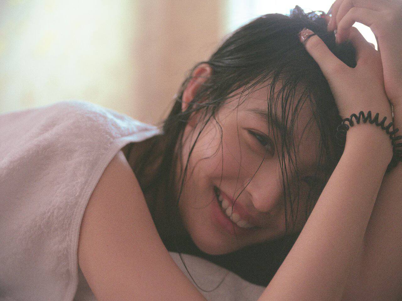 把浅笑的身体平放在床上,我要开始好好品味这具天工鬼斧般的精致身躯了。轮流的舔吸她的两个乳头,让她的双乳在我的掌中变换着形状,揉捏挤舔吸,浅笑已经情动的扭动起身体,她的双手也在我的背上和头部来回的摸索,真想沉迷于此,可是这还远远不是终点。
